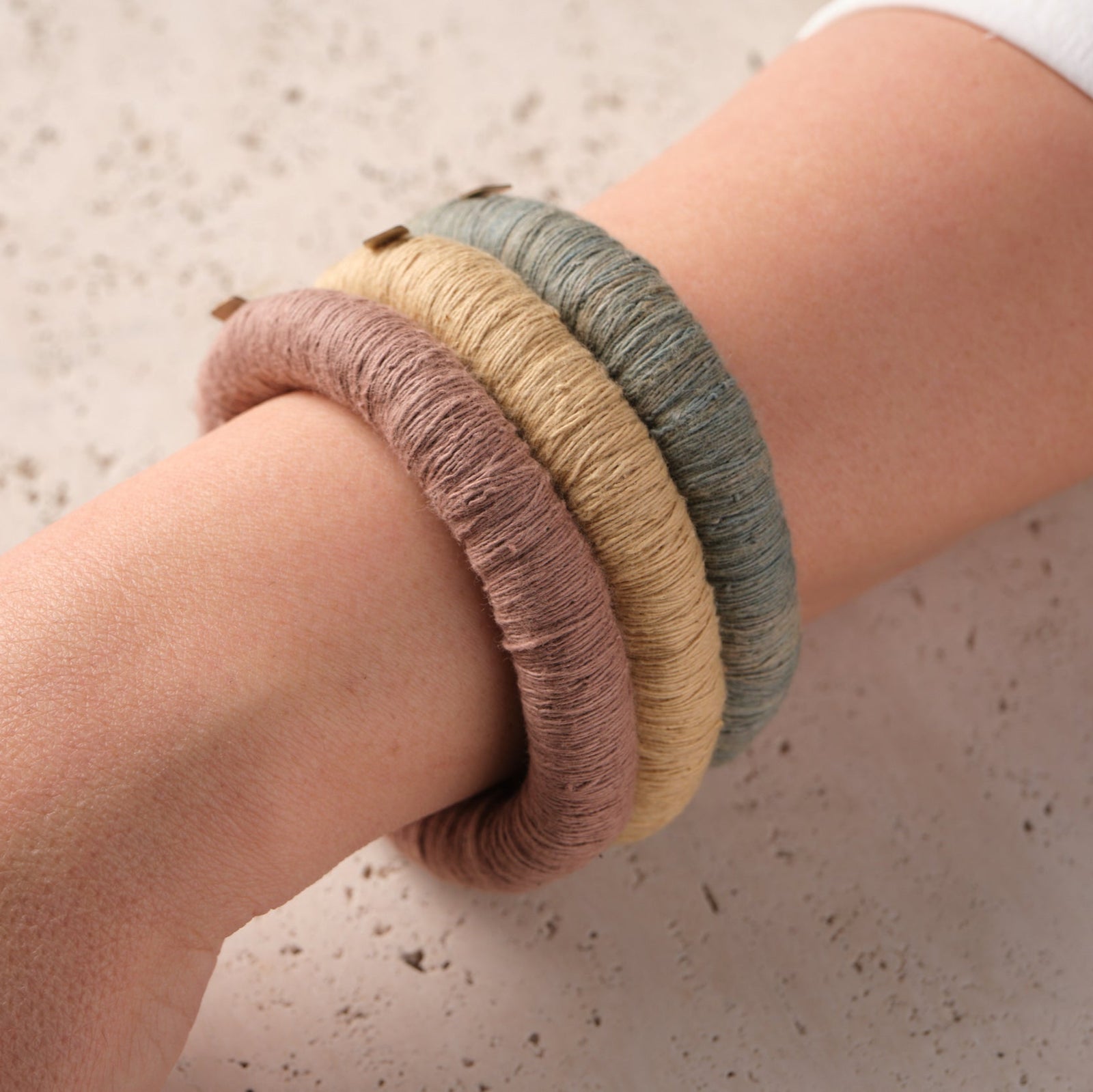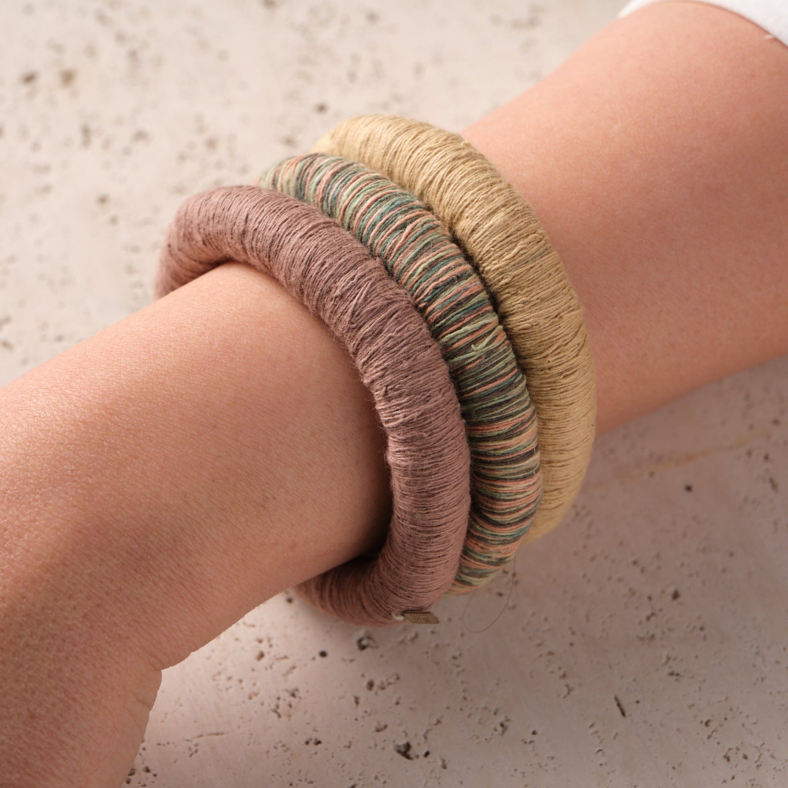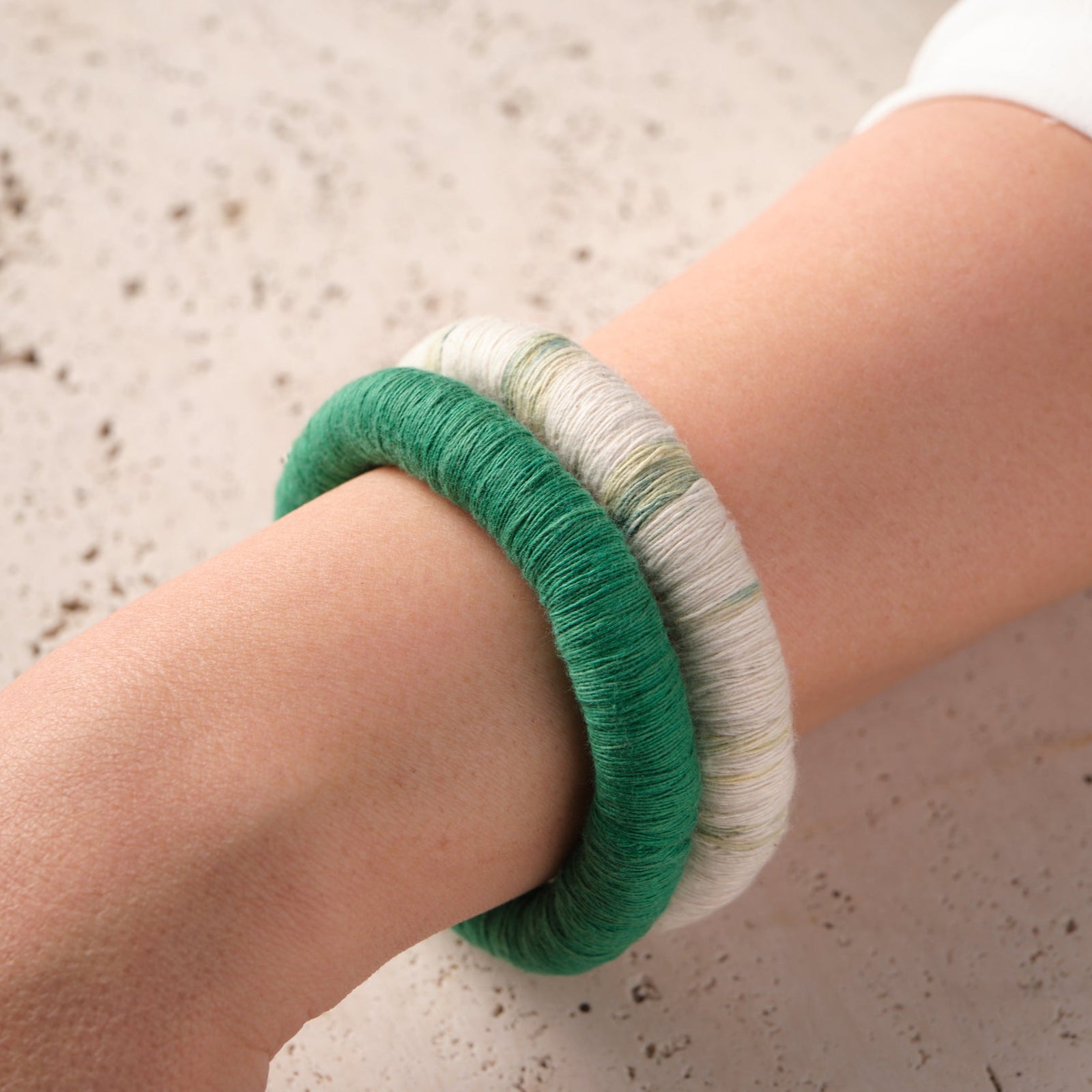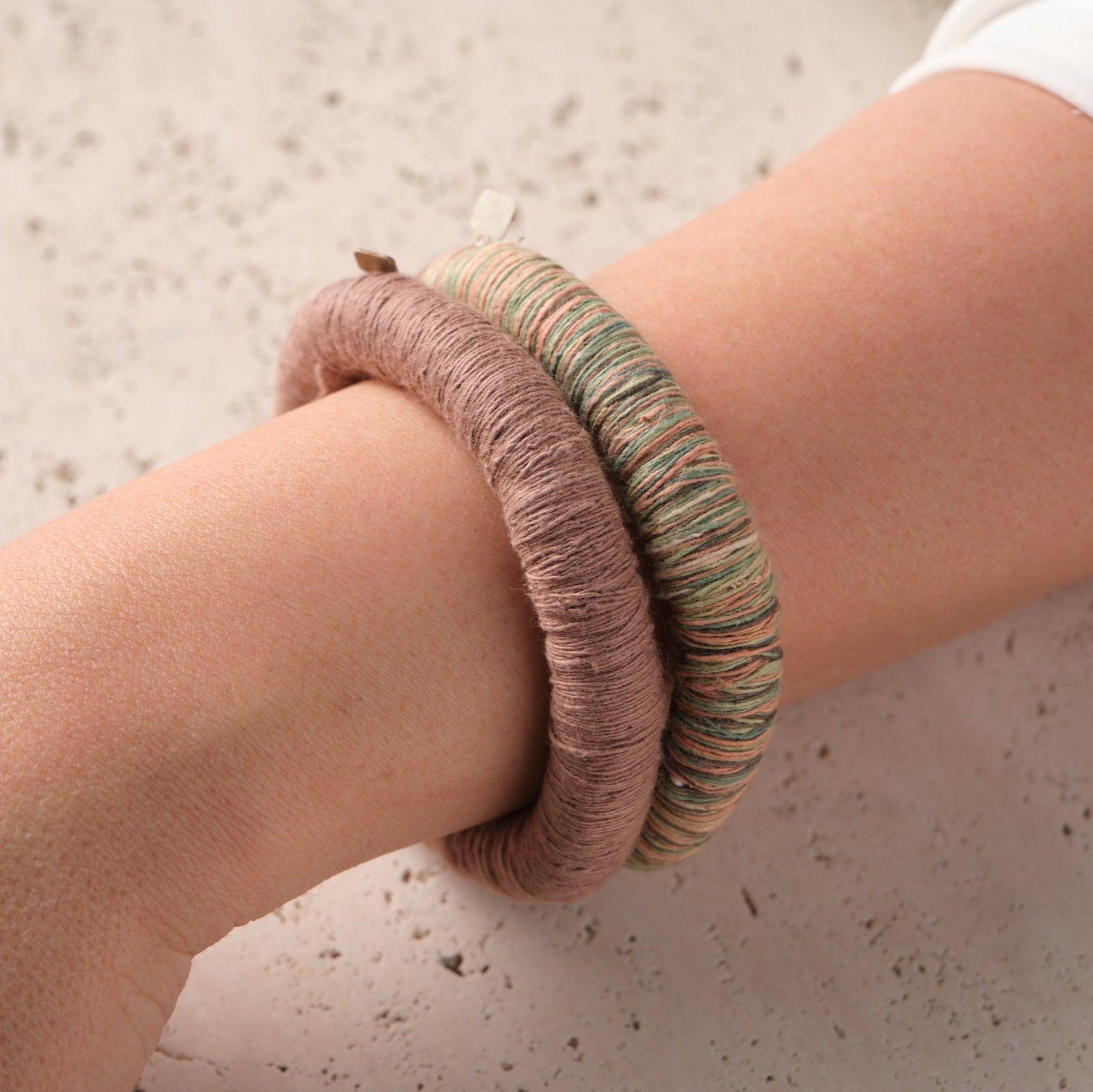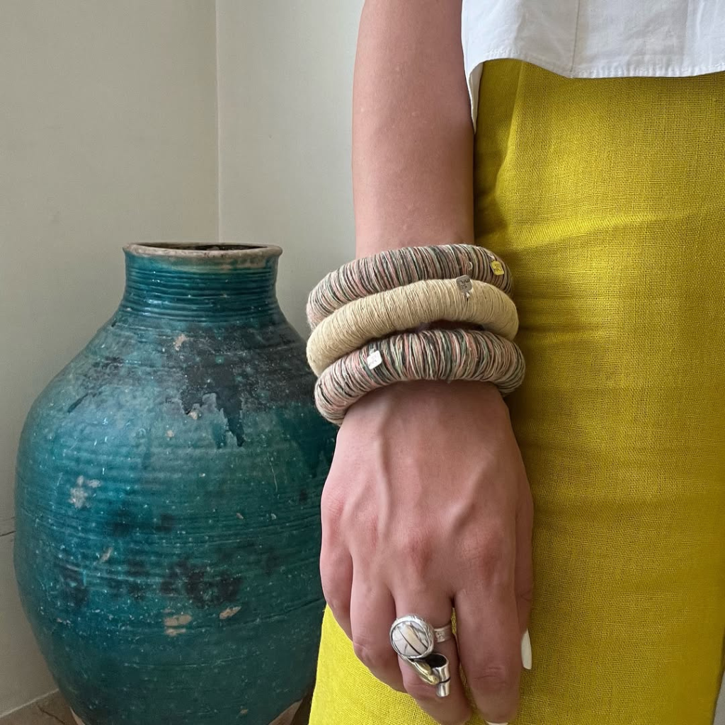 Explore our handcrafted bangles, each made with zilu strings that are naturally dyed, showcasing our commitment to sustainability and timeless artistry. A perfect choice for adding an eco-friendly touch to both our style and yours.